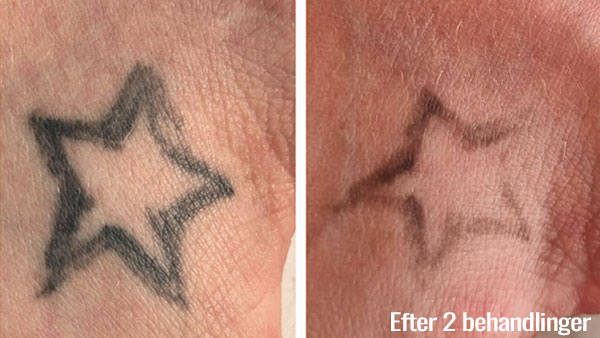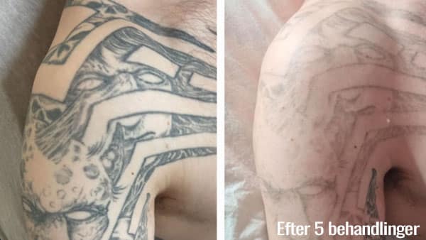 Allerede efter første behandling vil det være muligt, at se en forskel. Det er dog vigtigt, at understrege, tatoveringsfjernelse med laser kræver tålmodighed, kroppen og huden skal mellem hver behandling have tid til at hele og udlede det blæk som laseren har bearbejdet.